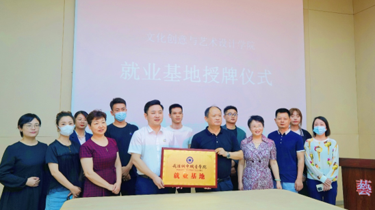 通过交流探讨,文化创意与艺术设计学院同武汉伊好鼎盛生命科学有限公司达成了合作意向,段永发副校长为企业授牌“武汉城市职业学院就业基地”。