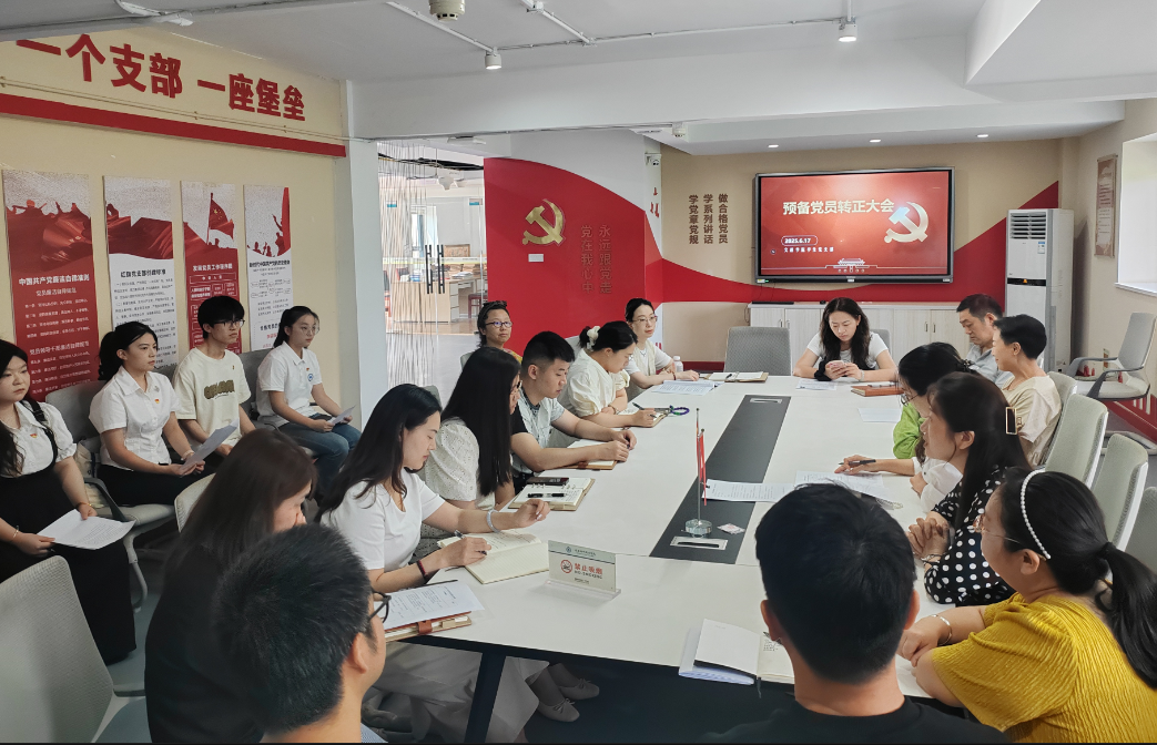 6 月 17 日上午,文化创意艺术设计学院学生党支部在学院教育党建工作室召开预备党员转正大会,讨论郭文涛等五名同志转正事宜。