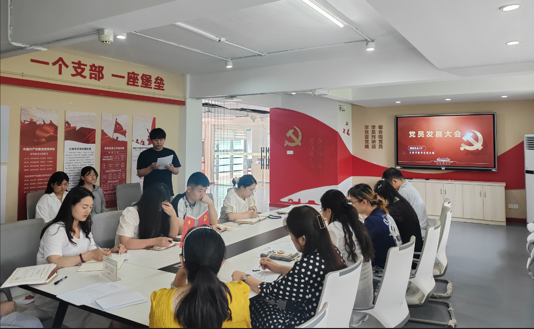 6 月 17 日上午,文化创意艺术设计学院学生党支部在学院教育党建工作室召开党员发展大会,讨论周汉玉等三名同志发展事宜。