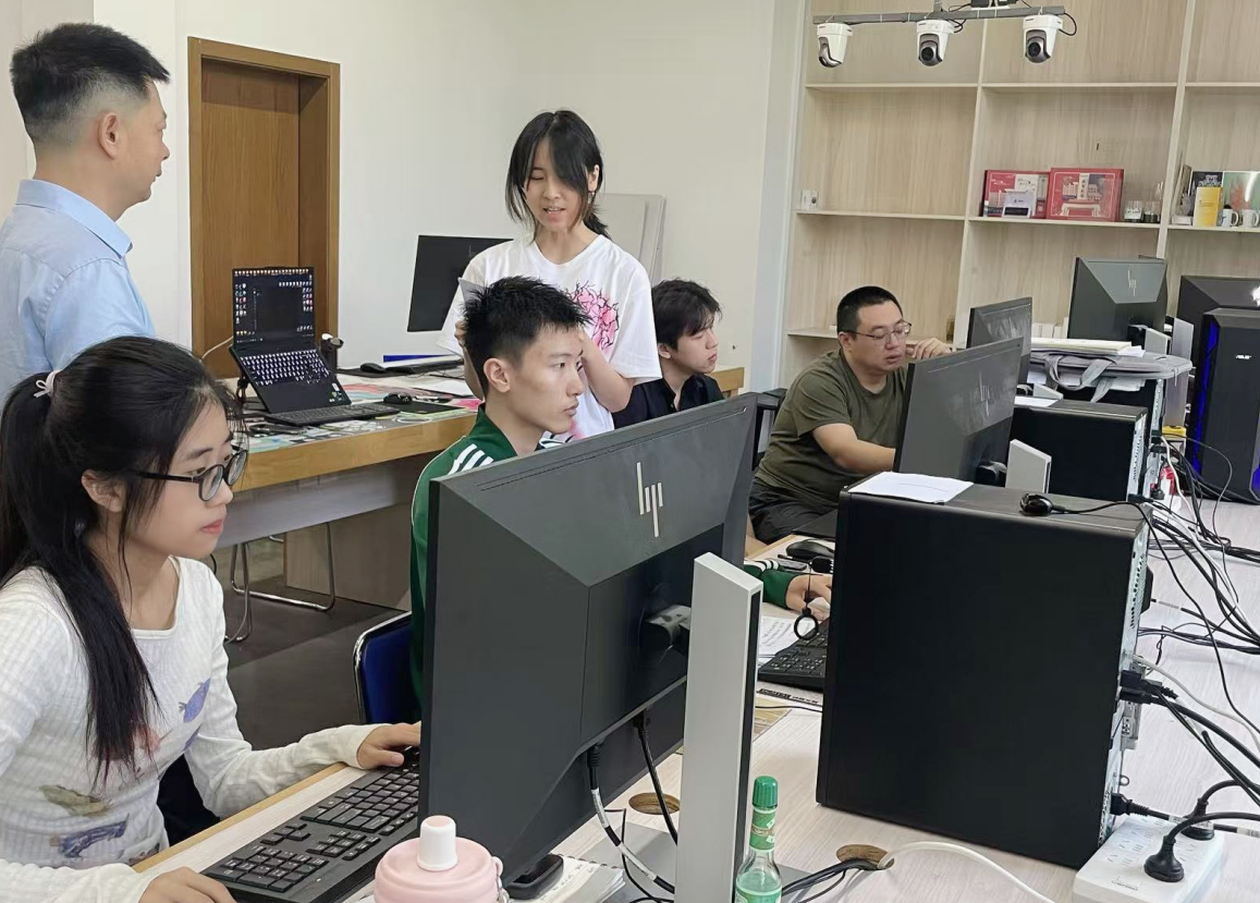 这份荣誉的背后,是备赛团队无数个日夜的辛勤付出和校领导及学院领导的大力支持。为全力冲击赛事佳绩,团队从学期初开始技能训练,赛前冲刺阶段,齐欣、孙莹莹两位指导教师无一日休息,全程坚守备赛一线,从方案打磨到技能细节优化,事无巨细,每天与学生团队并肩作战到深夜;团队周维老师专注指导设计创作与成品拍摄,助力作品呈现最佳效果;何力老师不仅参与备赛指导,还悉心负责设备打包运输等保障工作;设备主管徐斌老师在设备提供、技术支持等方面给予了高效协助;办公室明慧君老师承担起团队订餐等后勤事务;教学办刘周艳主任积极对接教务处,协调备赛学生课程等事务;邓坤副书记在团队学生工作方面为备赛提供支持!赵梦副院长为备赛方案出谋划策,从战略层面指引团队方向;李兰青副院长多次来关心备赛进展;胡建书记多次亲临备赛现场,给予队员们鼓励与支持,为团队注入强大精神动力;余辉院长更是坚持每天到备赛现场指导,实时解决备赛过程中的各类问题,在赛制解读、技能展示等方面给予关键指导!